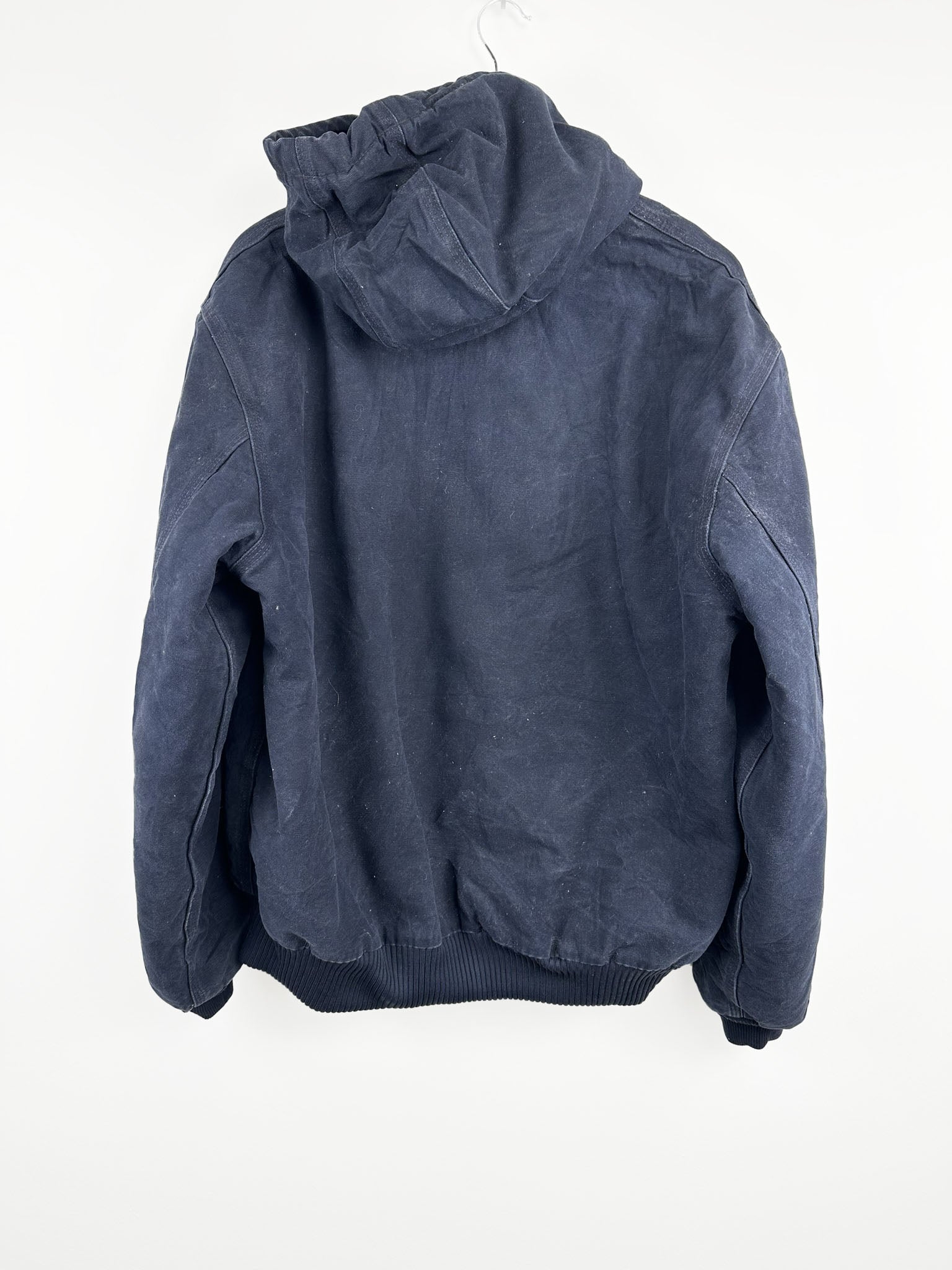La giacca Carhartt presenta segni naturali di usura e invecchiamento che ne testimoniano la storia, rendendola un pezzo unico e dal valore aggiunto.