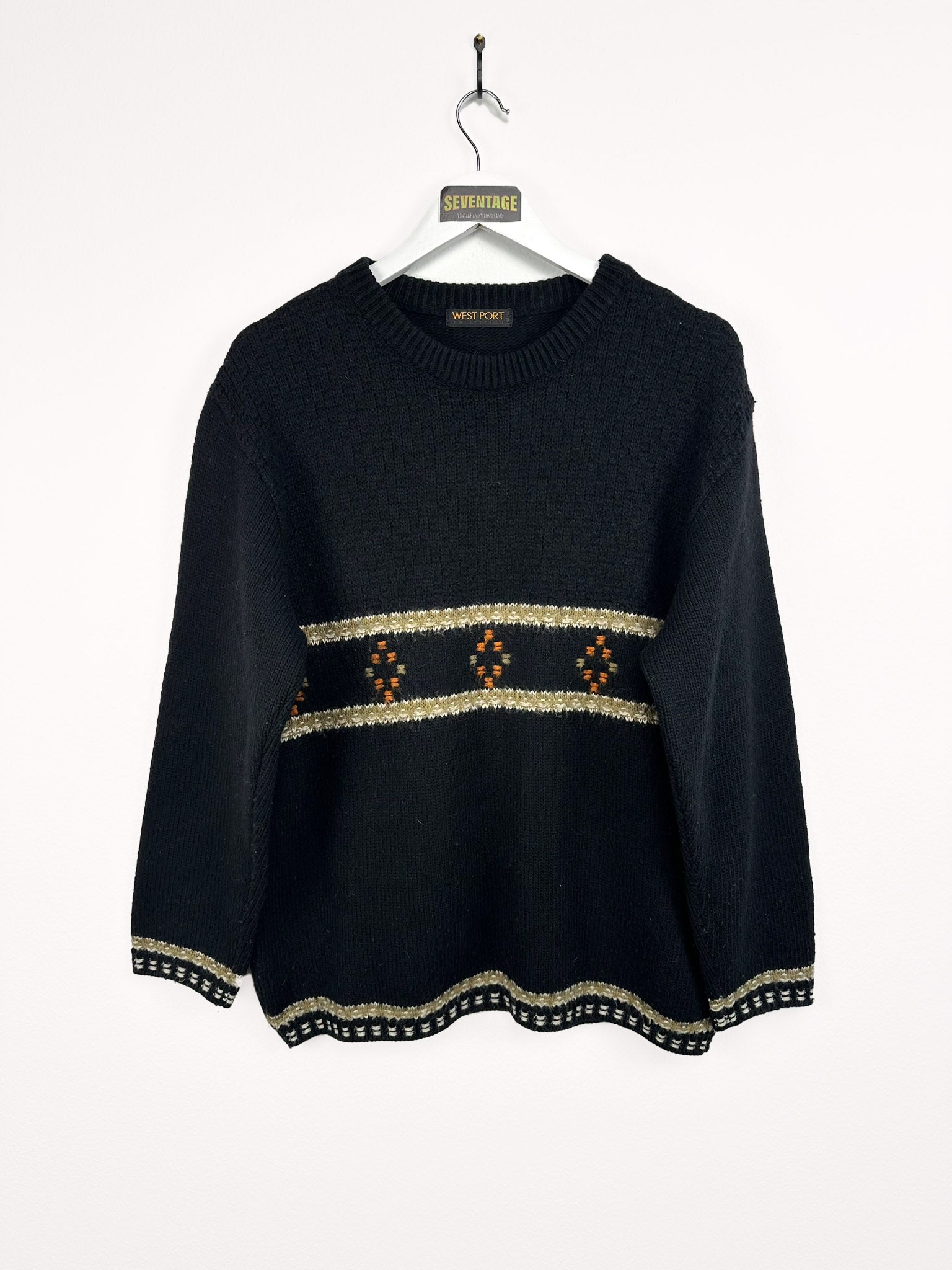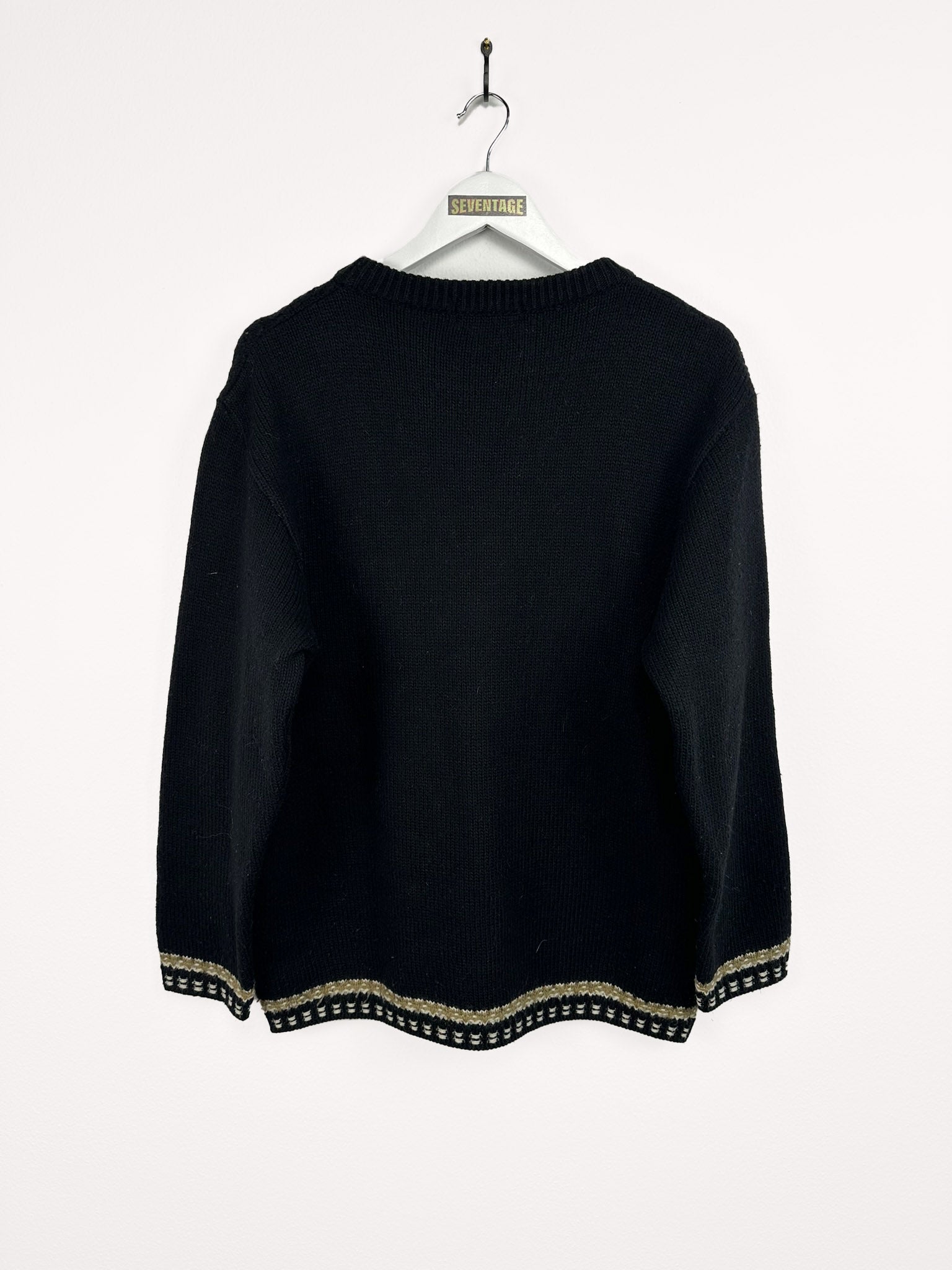 Maglione nero beige in lana - L